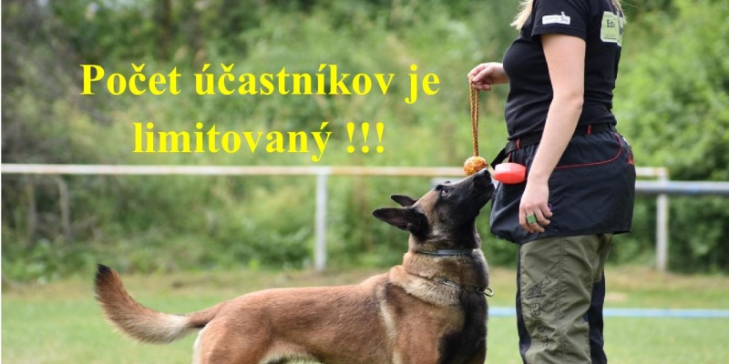 Maximálny počet psov je 15. Cena psovod + pes = 35 € Cena psovod bez psa = 25 € Uzávierka prihlášok je 10. augusta 2020 do kedy je zároveň potrebné uhradiť poplatok za prihlásenie. Do poznámky poprosím uviesť "Seminár s Milanom Škrabkom", meno a priezvisko psovoda.